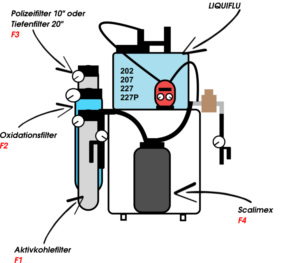 Für die mit Chemie bestückten Anlagen, führen wir das bekannte 202, 207, 227P unter unserem Namen LIQUIFLU 1202, 1207, 1227P im Sortiment.